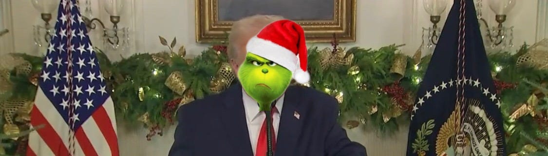 If you missed Trump’s ranting and raving “address” last night, then be glad you did. There’s nothing that I need to quote from it, but Trump looked terribly unwell—sweating profusely, slurring his words, scrambling through it all, and screaming at the camera. So as always, I made sure to cover up his face. You’re welcome.