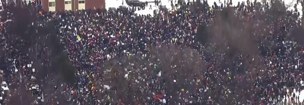 Yesterday, massive anti-Trump and anti-ICE events were held across the country—with more scheduled for today. In Minneapolis, tens of thousands flooded the streets to peacefully protest against the killing of Renee Nicole Good, and to speak out against the regime. They also held a large march downtown.