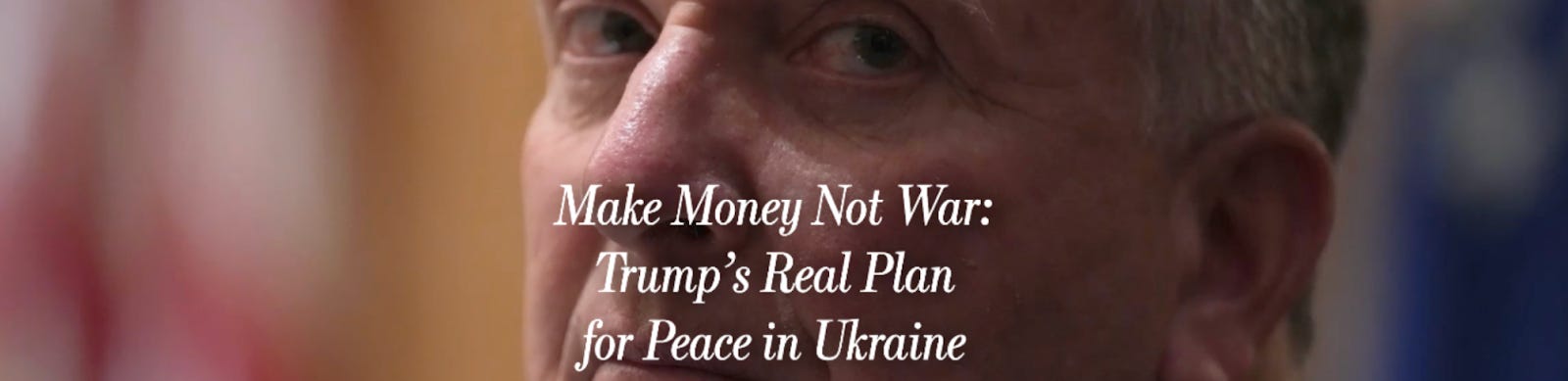 The Wall Street Journal published a blistering report, titled: “Make Money Not War: Trump’s Real Plan for Peace in Ukraine.” In it, they reveal that the Trump regime is using the guise of these “peace talks” to conduct personal business.