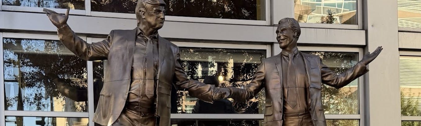 A constant reminder of Trump’s friendship with Epstein is back on display in DC. The infamous statue of the pair holding hands now resides in front of the famous Busboys and Poets cafe.