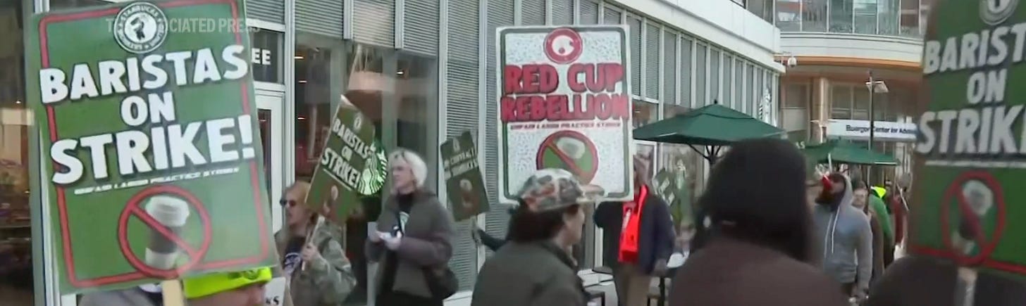 Speaking of showing outrage, more than 1,000 Starbucks workers did just that yesterday—by going on strike in dozens of cities across America. Employees are demanding better pay and benefits. The workers are asking folks not to buy from the coffee chain until Starbucks relents. Sounds good to me!