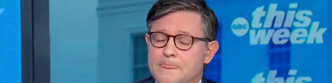 Speaker Mike Johnson was back on TV Sunday pathologically lying to the world. Johnson spoke in circles about his refusal to swear in Dem Rep.-Elect Adelita Grijalva.