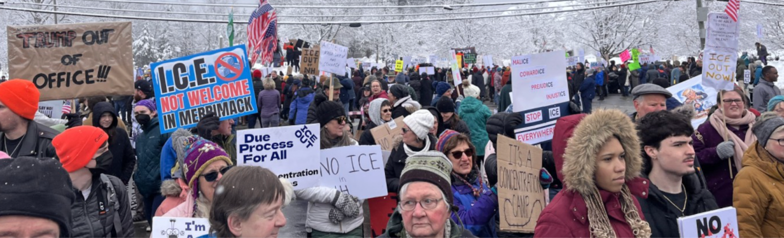 In New Hampshire, about 1,500 people showed up to protest a proposed ICE facility in Merrimack. The public pressure worked—even Republican Governor Kelly Ayotte pushed back hard. Noem folded and agreed not to move forward with the new site.