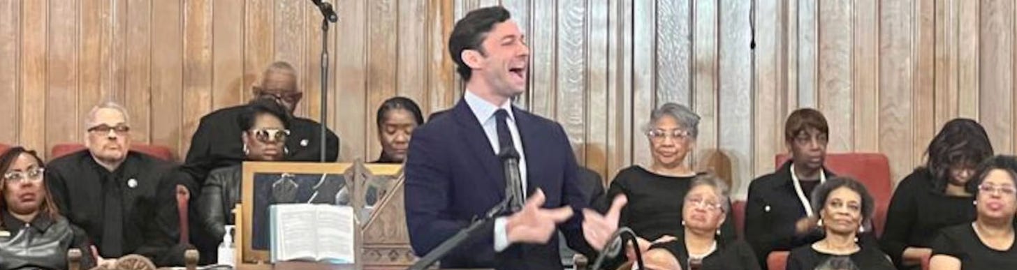 On Sunday morning, Sen. Jon Ossoff walked up to the pulpit at Big Bethel A.M.E. Church in Atlanta and delivered a blistering speech to a packed room.