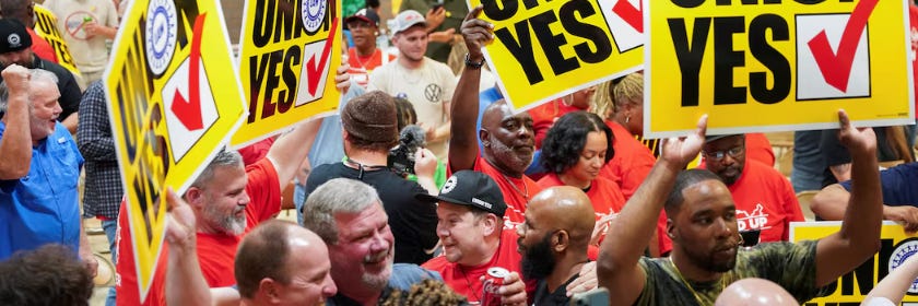 A whopping 96% of Volkswagen workers at the Chattanooga plant voted for the first major union contract at a Southern auto plant in decades.