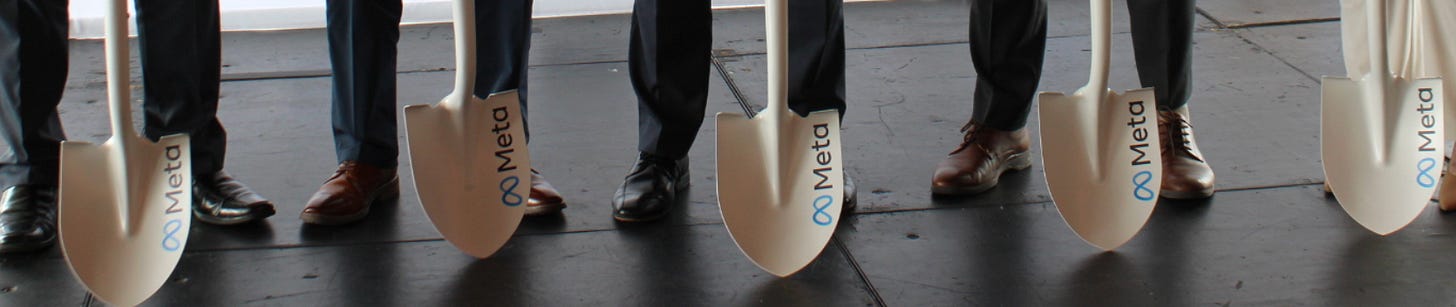 The same day, GOP Governor Kevin Stitt broke ground on a $1 billion data center in Tulsa for Meta—the company that owns Facebook and Instagram. The groundbreaking happened the same week Meta announced 8,000 layoffs. The deal includes an 85% annual property tax exemption, meaning Meta pays next to nothing in local taxes for 25 years.