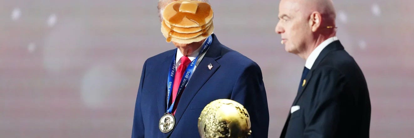 During a ceremony for the World Cup at the Kennedy Center yesterday, Trump was awarded the inaugural “FIFA Peace Prize.” That’s right—FIFA—the soccer organization.
