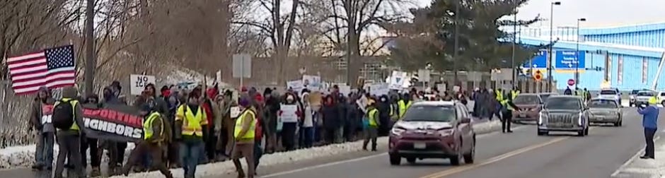 A large crowd of labor union members and activists held a rally outside of Minneapolis-St. Paul International Airport this week. They were there to push back against deportation flights taking off from a private hangar.