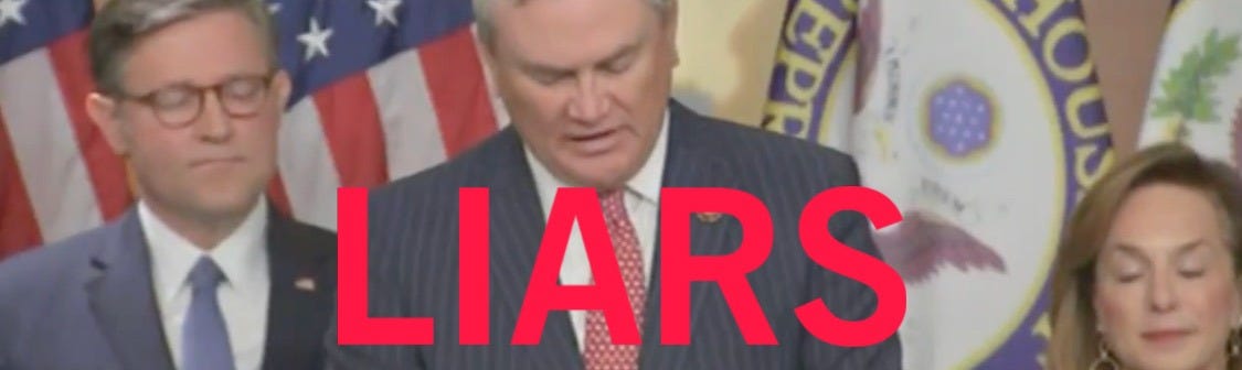 Yesterday, GOP Rep. James Comer, Chairman of the House Oversight Committee, lied and said the Epstein “evidence we gathered does not implicate [Trump] in any way.” Let me stop you right there, James.