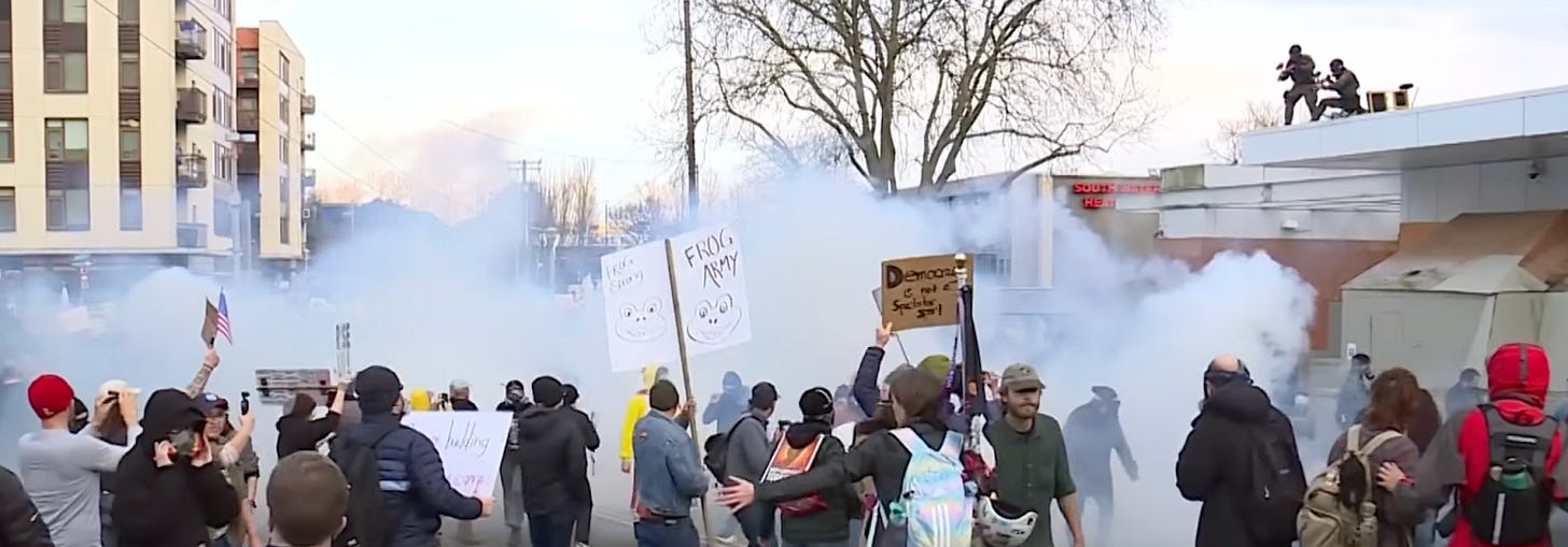 Thousands attended the “ICE Out” protest in Portland, Oregon on Saturday, during which Trump’s federal agents fired tear gas and other munitions at the crowd. Some of those hit were children in strollers.