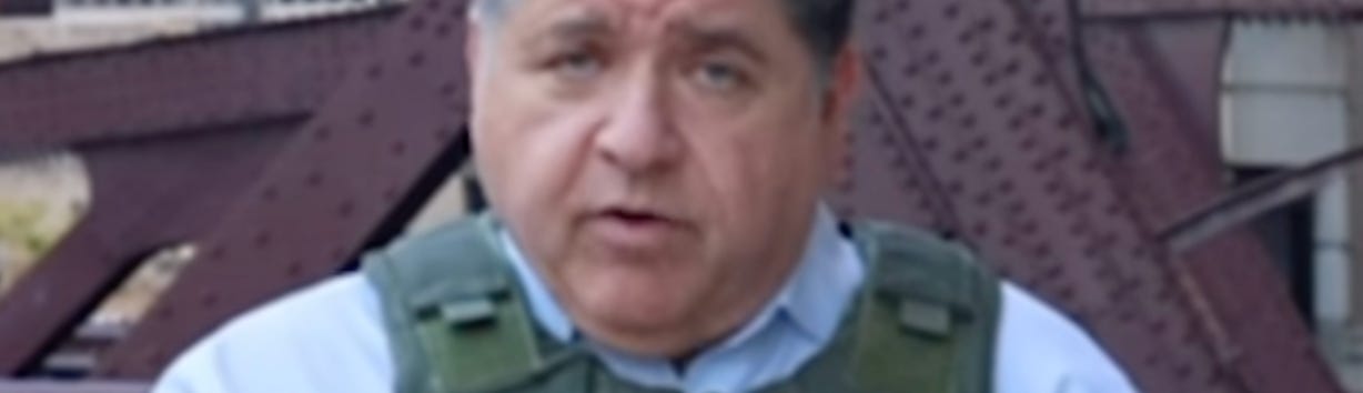 Pritzker wore a vest as if he were reporting from a war zone, while a peaceful scene played out behind him. Joking that residents are “being forced to eat hot dogs with ketchup,” he quipped: “It’s a challenge to survive here in the city of Chicago, but there’s no hellscape that I’d rather be in.”