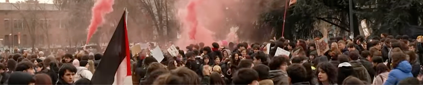 People flooded the streets of Milan, Italy, to protest Trump’s decision to send ICE to the Winter Olympics, which kicked off this week. Demonstrators held signs that read “ICE Out” and banners that slammed JD Vance and Marco Rubio.