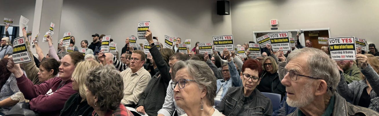In the small town of Urbana, a $1 billion data center proposal surfaced—and residents only had two weeks to organize. They used the time to gather more than 4,000 signatures for a petition against the center. On March 3, they secured a 6-1 council vote in favor of a moratorium blocking the project.