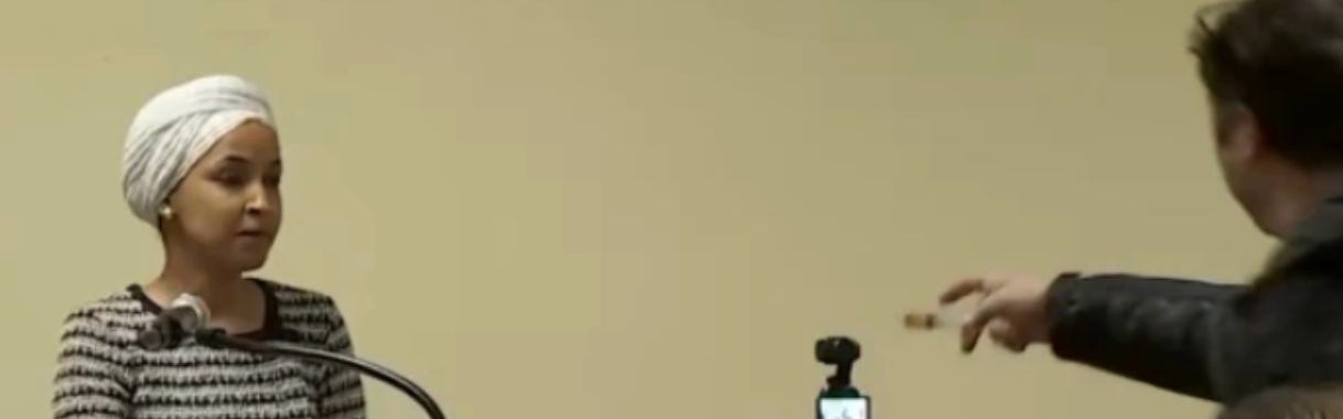 MN Rep. Ilhan Omar was sprayed by a pro-Trump madman during a town hall event the other night with what police identified as apple cider vinegar. It was scary, because it could have been anything. But Omar wasn’t shaken—not one bit.