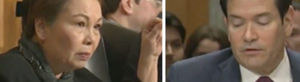 Dem Senator Tammy Duckworth dismantled Secretary of State Marco Rubio during his Senate testimony yesterday.