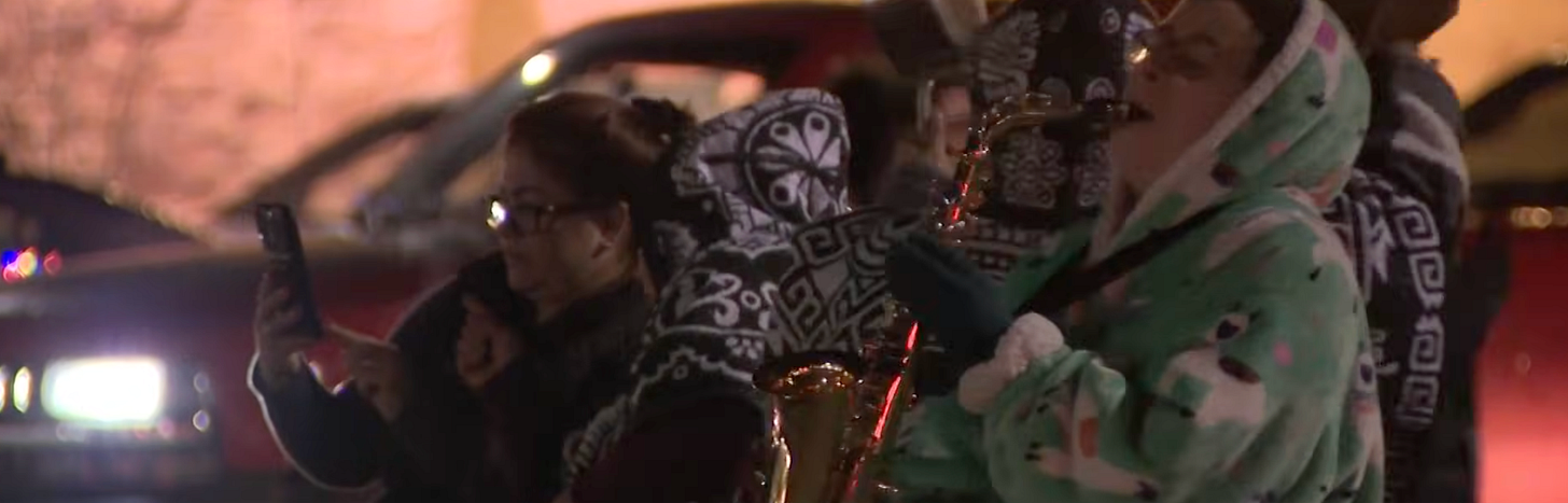 In Columbus, Ohio, protesters held a “No Sleep for ICE” rally where Trump’s federal immigration goons were allegedly staying. And as you can see from the image above, they brought the noise—playing saxophones, trombones, and blaring techno music.